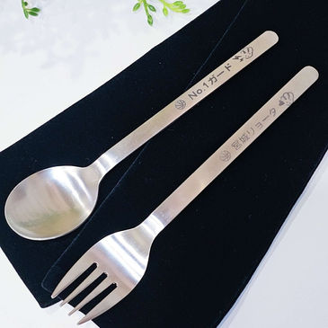 日製18-8不鏽鋼(SUS304)餐具,再以電解印刷加工印上可愛的良田小頭,湯匙上的閃電連想到電光石火吃蛋糕的良田,叉子上的愛心則象徵良田插中你的心!電解印刷為手工印製,每支餐具印製位置不同為正常